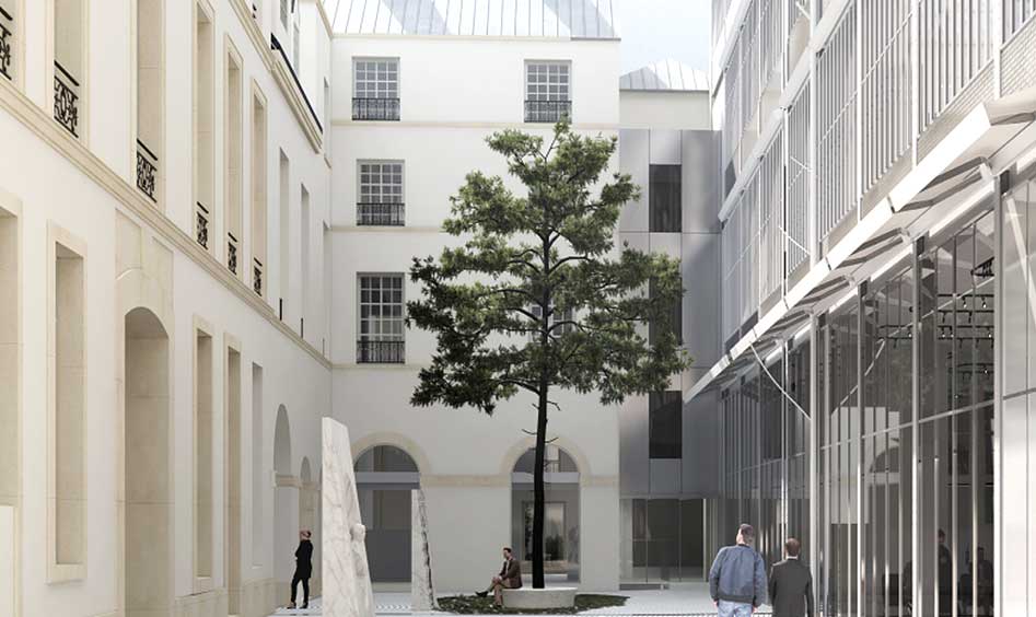 Programme : 2 200 m2 Maîtrise d’Ouvrage : Edmond de Rothschild AMO : CG Consulting Architecte : Axel Schoenert Architecte Lieu : Paris (75) Date prévisionnelle de livraison : Juillet 2024 Montant des travaux : 8 M€ HT Démarche développement durable Mise en œuvre d’une rénovation exemplaire d’un point de vue environnemental, multi-certifiée et labelisée, intégrant par ailleurs les objectifs