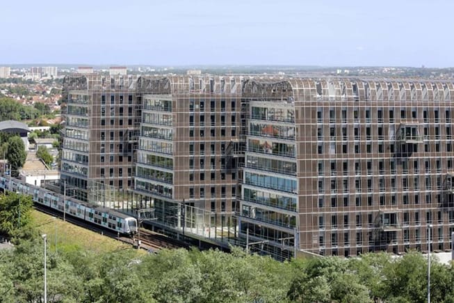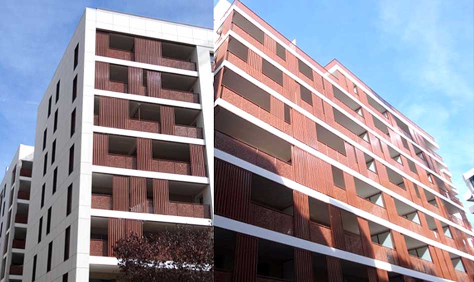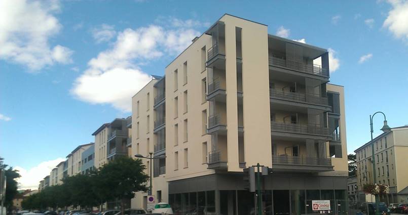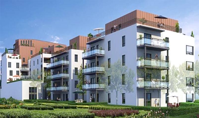 Programme : 4 226 m² SHON Maîtrise d’Ouvrage : Marignan Architecte : VCA Atelier d’architecture Lieu : Décines (69) Date de livraison: 2013 Démarche développement durable Certification NF Habitat HQE, Référentiel Habitat Durable du Grand Lyon et Label BBC Panneaux solaires couvrant 44,8% des besoins d’ECS La part d’énergies renouvelables dans le bilan énergétique global est de 32% Chaufferie collective